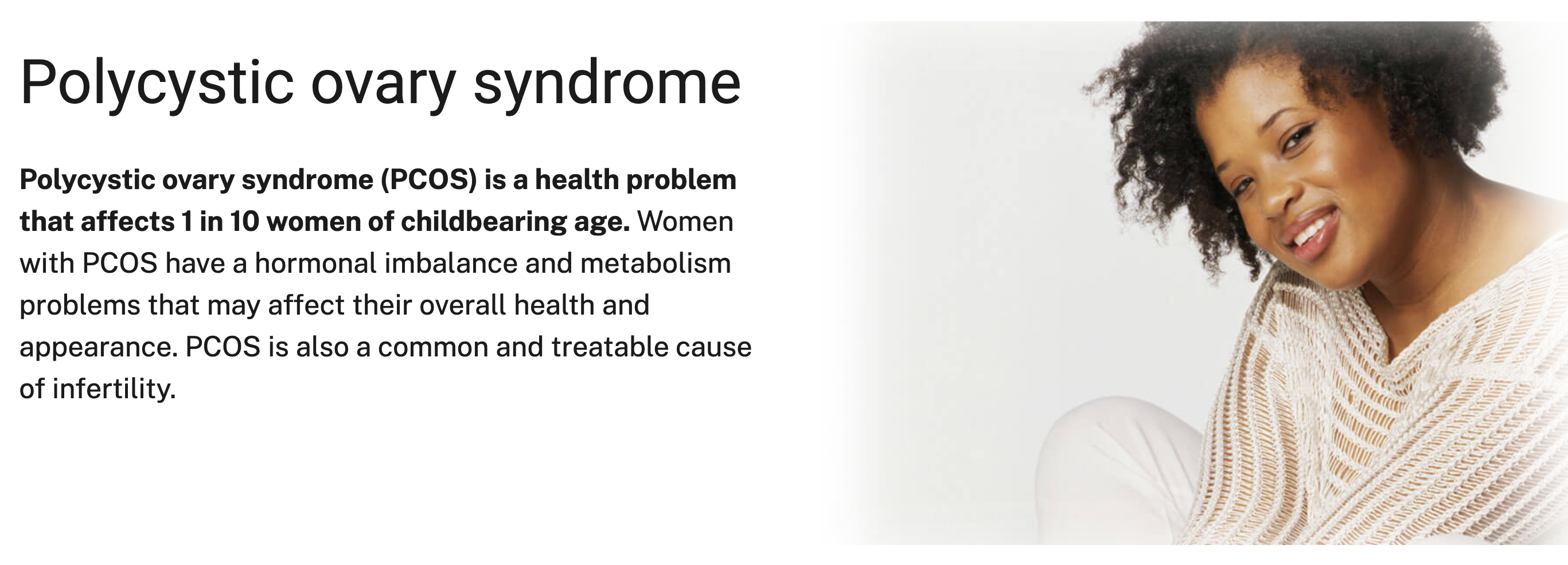 Polycystic ovary syndrome (PCOS), also known as polycystic ovarian syndrome, is a common health problem caused by an imbalance of reproductive hormones. The hormonal imbalance creates problems in the ovaries. The ovaries make the egg that is released each month as part of a healthy menstrual cycle. With PCOS, the egg may not develop as it should or it may not be released during ovulation as it should be.